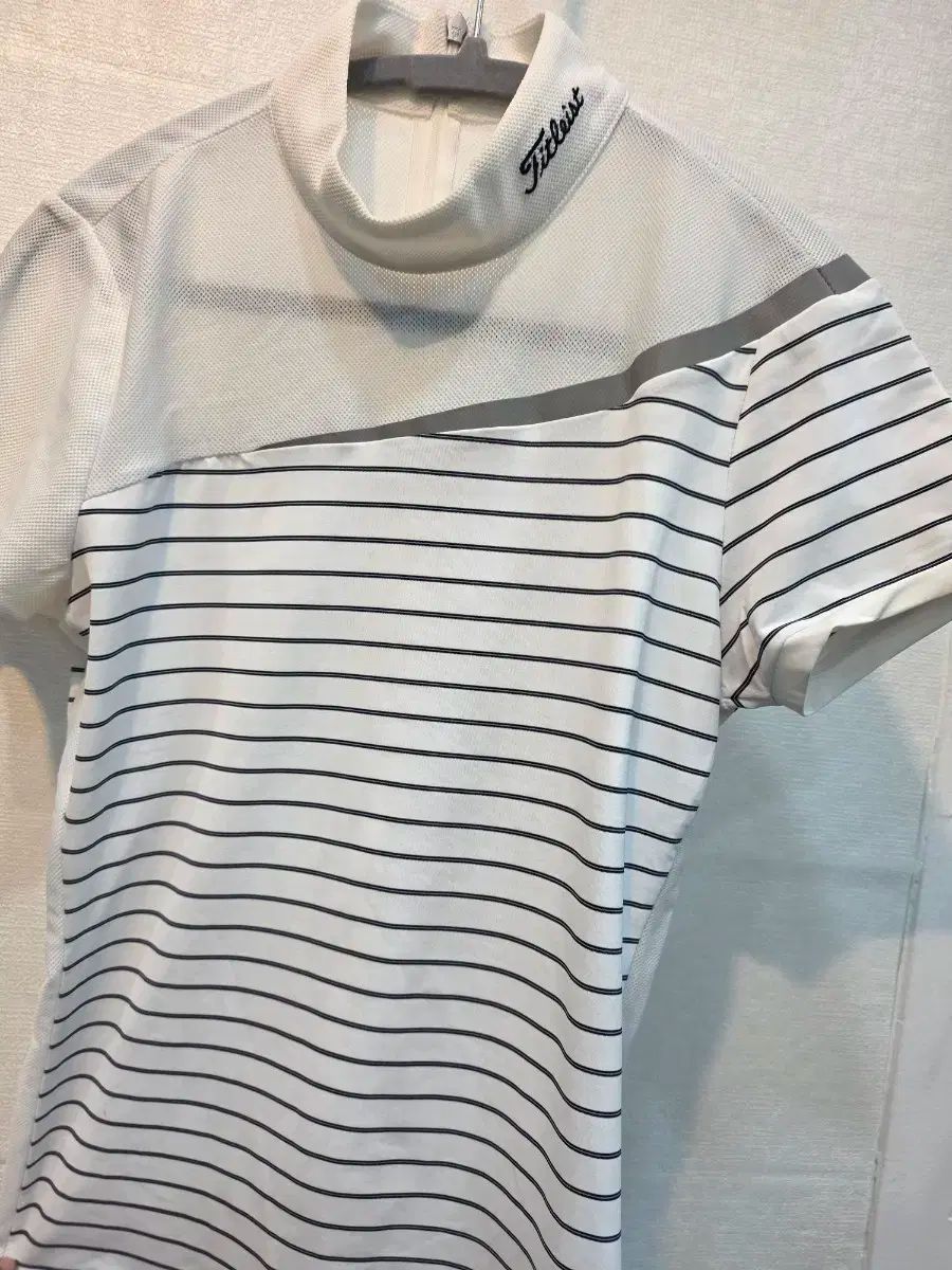 Titleist ストライプ ゴルフ 半袖 Tシャツです。白 바탕에 黒 ストライプ 柄が入っています。首 부분に Titleist ロゴが 새겨져 있습니다。コメント 없으시면 바로 安全決済해주시면 됩니다!