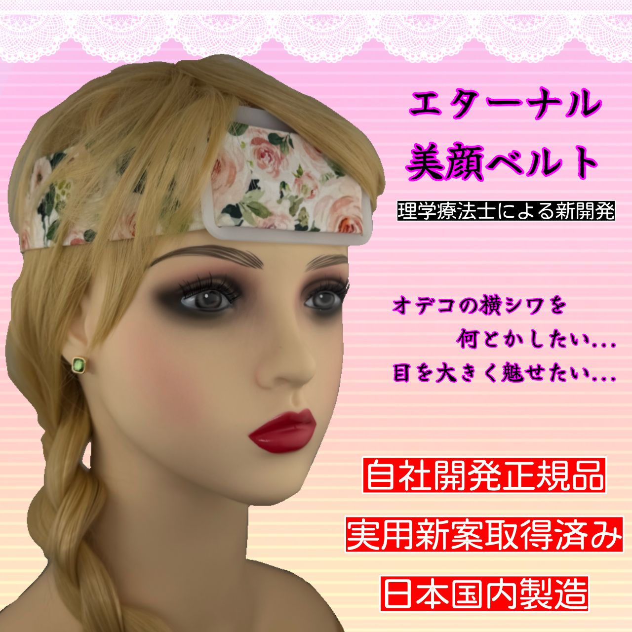 理学療法士が新開発 エターナル美顔ベルト 美顔器 目を大きく 眼瞼下垂対策 横ジワ防止 シワ対策 たるみ改善 リフトアップ 美肌 バンダナ フラワー 花柄