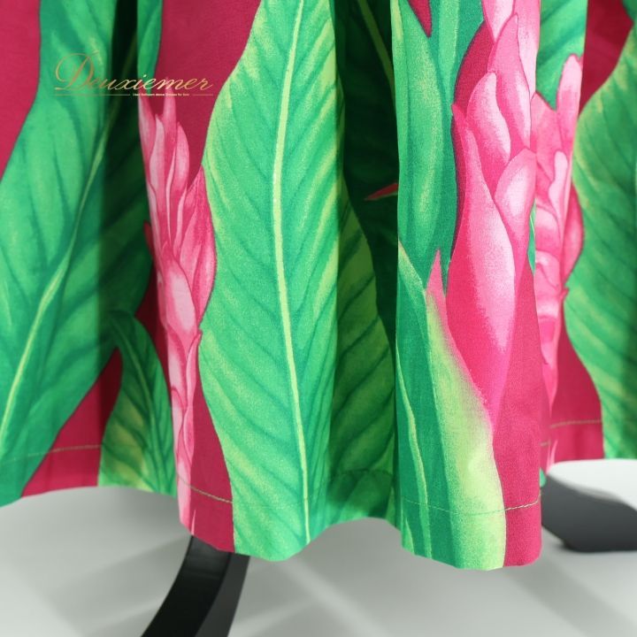 フラダンス 衣装 ワンピース ドレス ピンク系 ブルーヘブンカンパニー フラ ダンス 緑 ベロア ノースリーブ 光沢 華やか 鮮やか 袖なし ハワイアン BLUE HEAVEN COMPANY アロハ ハワイアンプリント グリーン系