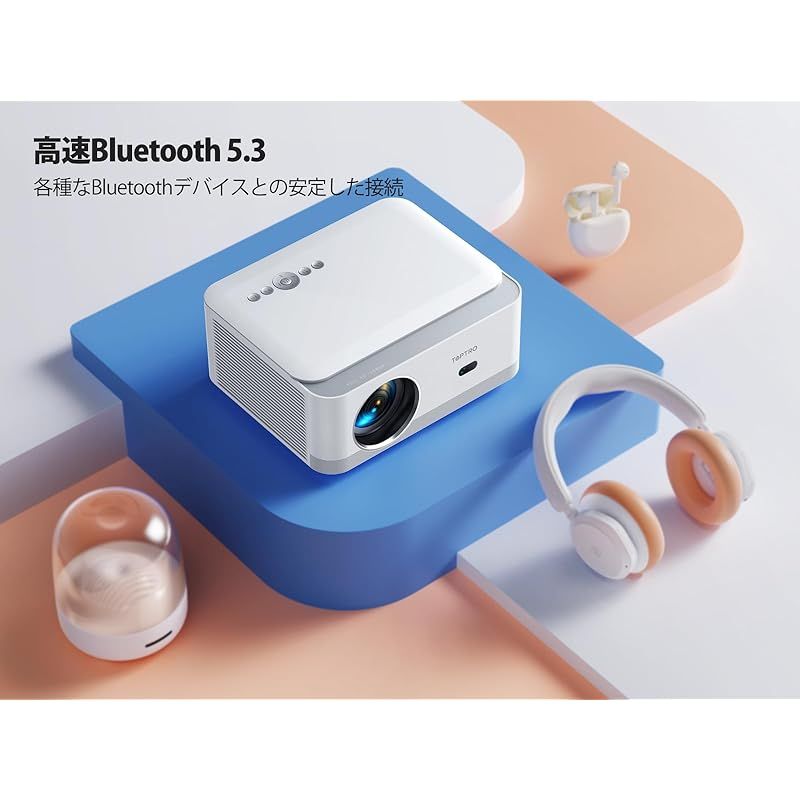 ??【低遅延Bluetooth5.3&内蔵高音質HiFiスピーカー】プロジェクター 4K は低遅延Bluetooth 5.3により、高速かつ安定したBluetooth接続を実現し、音声や映像の同期性を向上させます。遅延なくスムーズなコンテンツのストリーミングやワイヤレス接続を楽しむことができます。プロジェクターおすすめが内蔵された高音質のHiFiスピーカー10W*2も備えています。これにより、迫力のあるサウンドを楽しむことができます。外部スピーカーを接続する必要がなく、手軽に臨場感あふれるオーディオ体験をお楽しみいただけます。