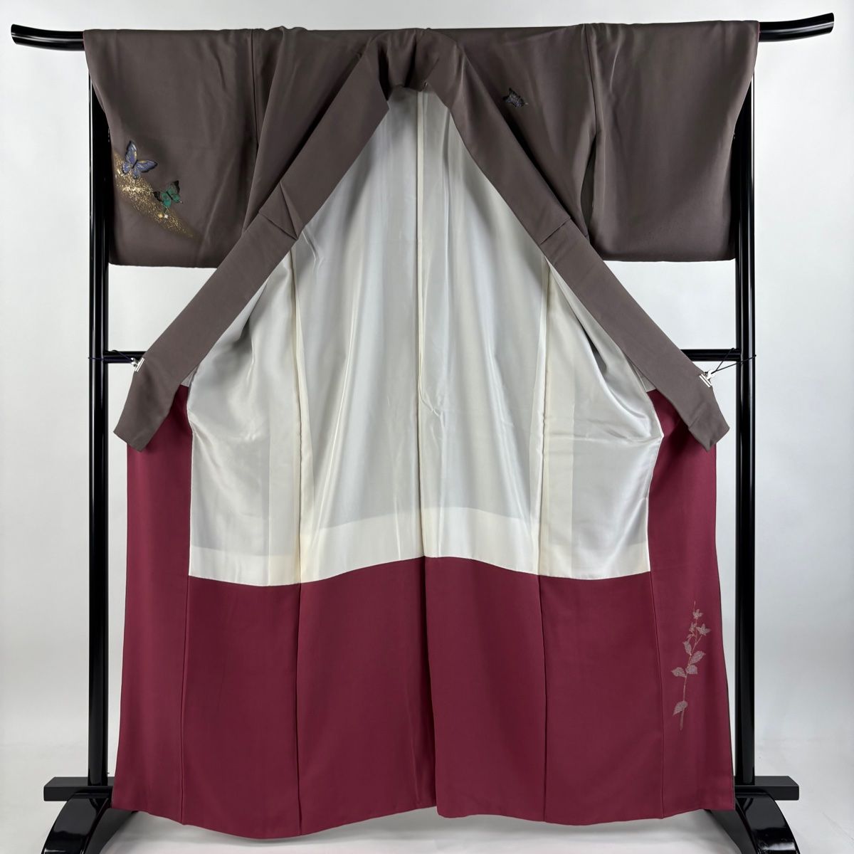 付下げ 身丈163.5 cm 裄丈67.5 L 袷 蝶 箔散らし 刺繍 金銀彩 茶紫 正絹 秀品