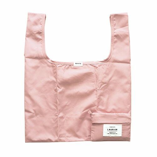 コンビニのお弁当が傾かずに入るマチが広めのエコバッグ。タグ部分のBENTOの文字がアクセントになっています。【検索ハッシュタグ】#エルコミューン#エコバッグ#買い物袋#バッグ#鞄#LAURIER#BENTO#スモークピンク#桃