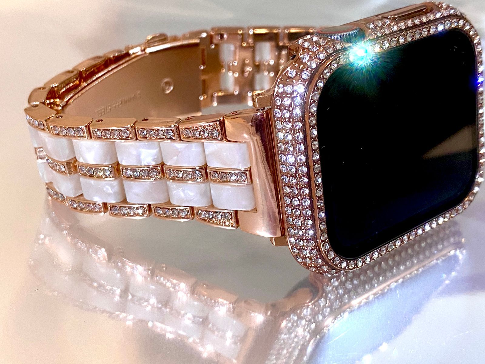 Apple Watch キラキラ シャンパンピンクローズセット カバー&ベルト