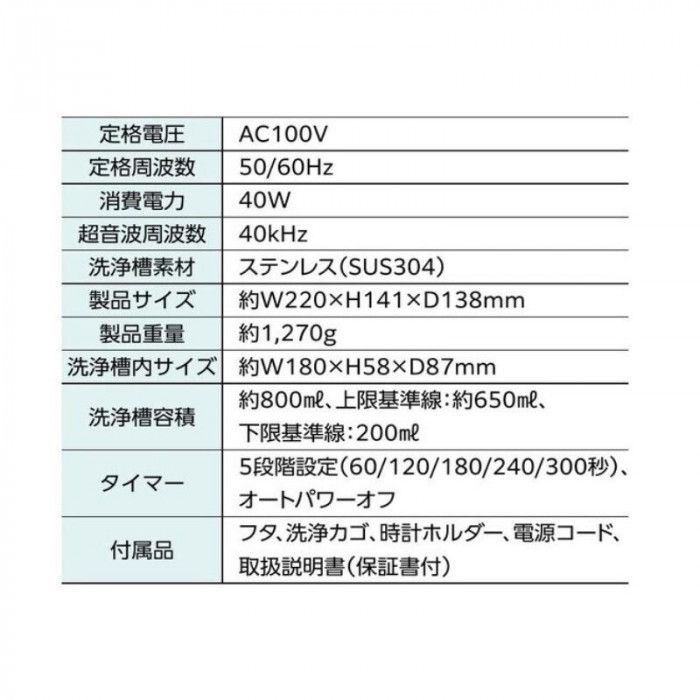 付属品:時計ホルダー、洗浄カゴ
