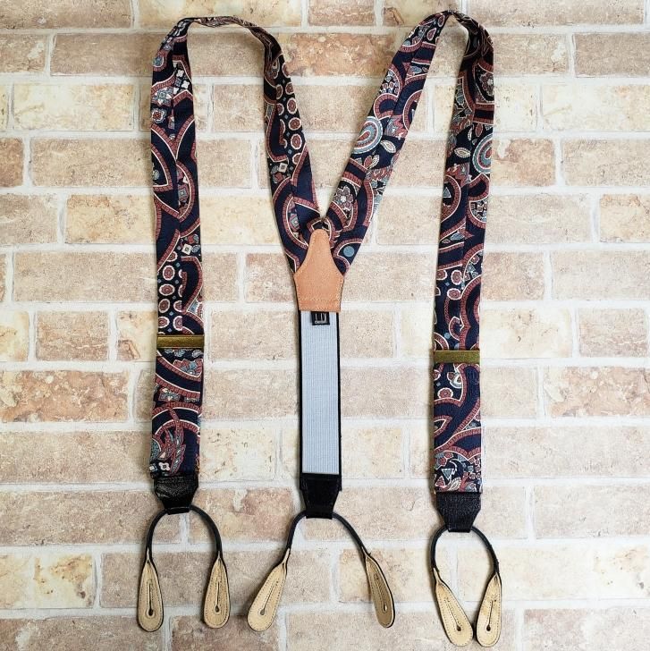ダンヒル ヴィンテージ 総柄 Y型 ボタン式 サスペンダー 伊製
