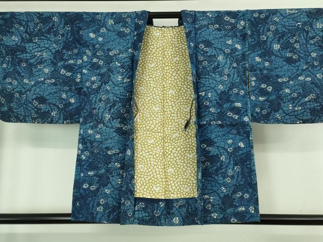 平和屋着物 上 浦野理一 型染 羽織 草花文 鬼しぼ縮緬 羽織紐付き kh 5