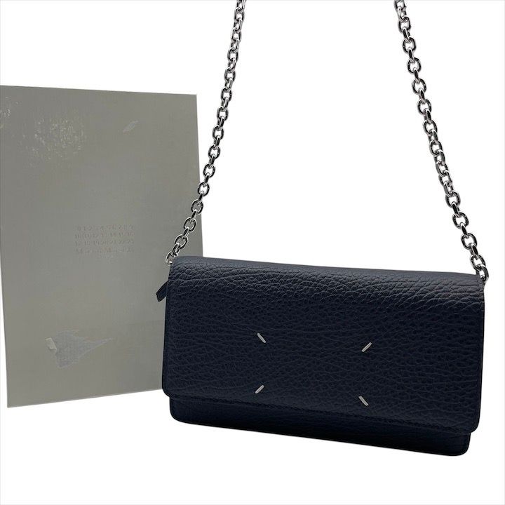 Maison Margiela メゾン マルジェラ レザー ミニ チェーン ウォレット 長財布 レディース ネイビー k 6773