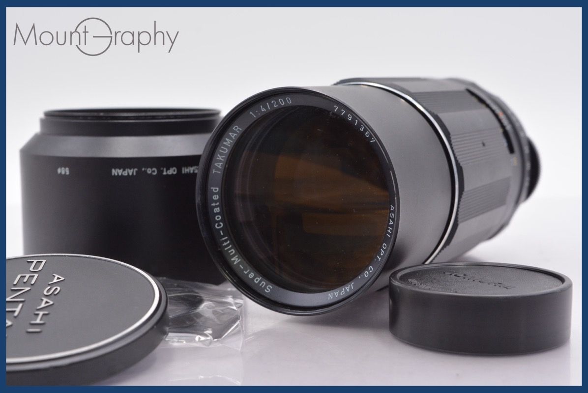 上 ペンタックス PENTAX Super-Multi-Coated TAKUMAR 200 mm F 4 前後キャップ-レンズフィルター フード付 mj 4914