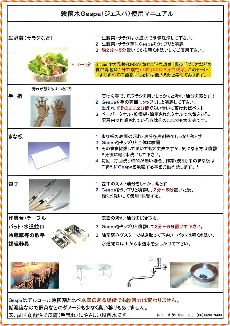 殺菌料製剤【Gespa】ジェスパ はウイルス・細菌に効果のある、安心・安全な殺菌水です。