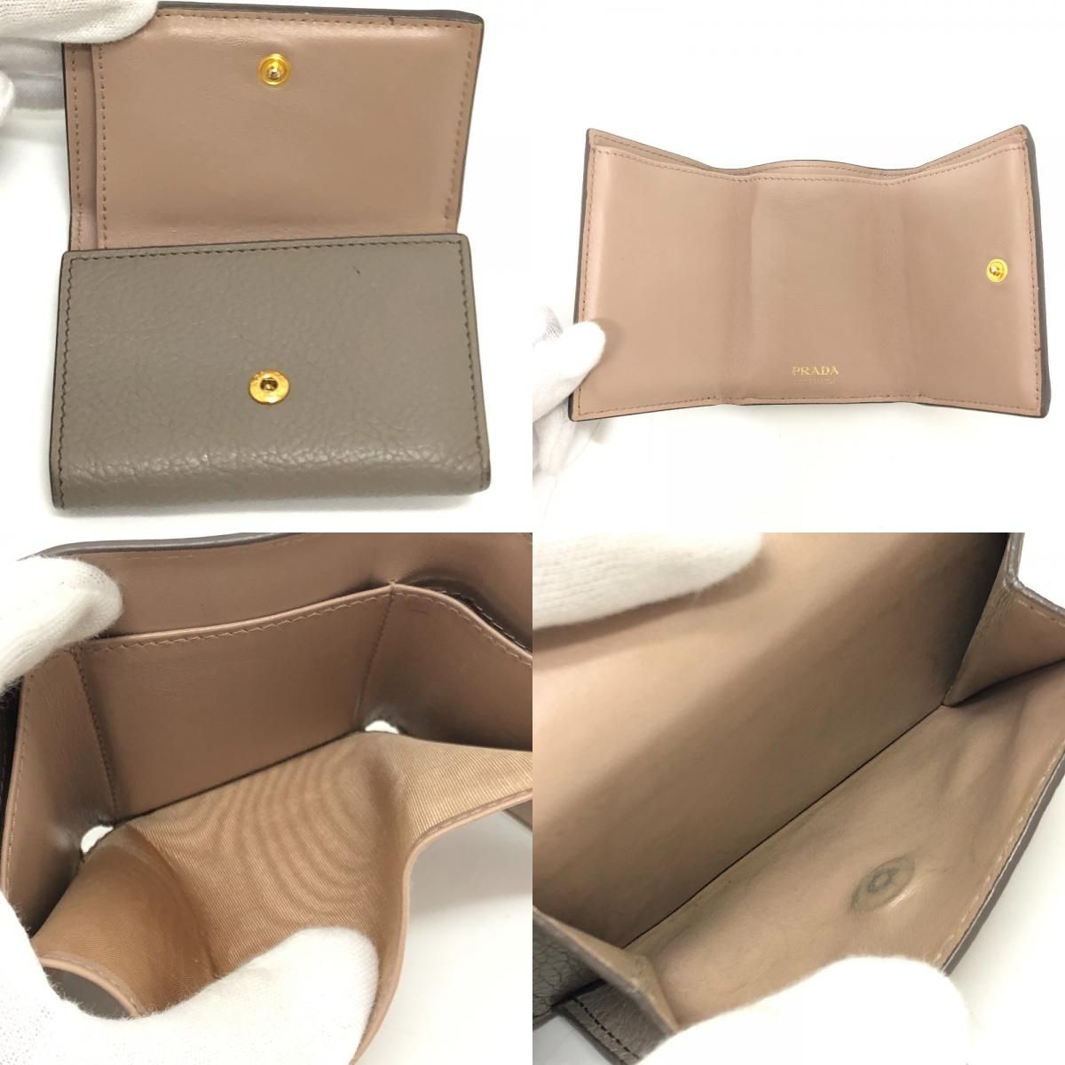 PRADA プラダ 3つ折り財布 ロゴ 1 MH 021 レザー ベージュ