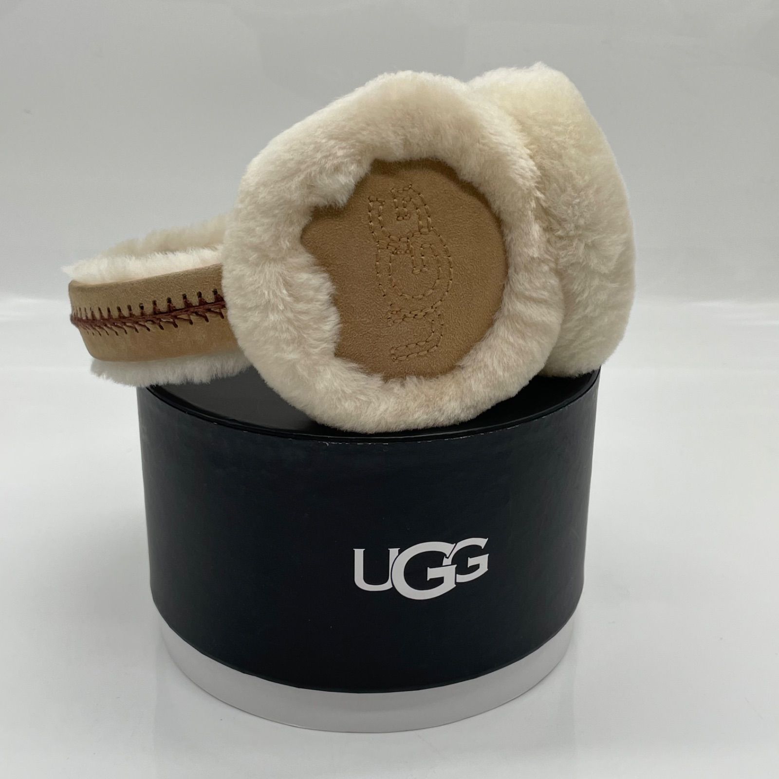 冬KO3241□UGG Sheepskin Embroidery Earmuff イヤーマフ #20070 ベージュ 箱付き