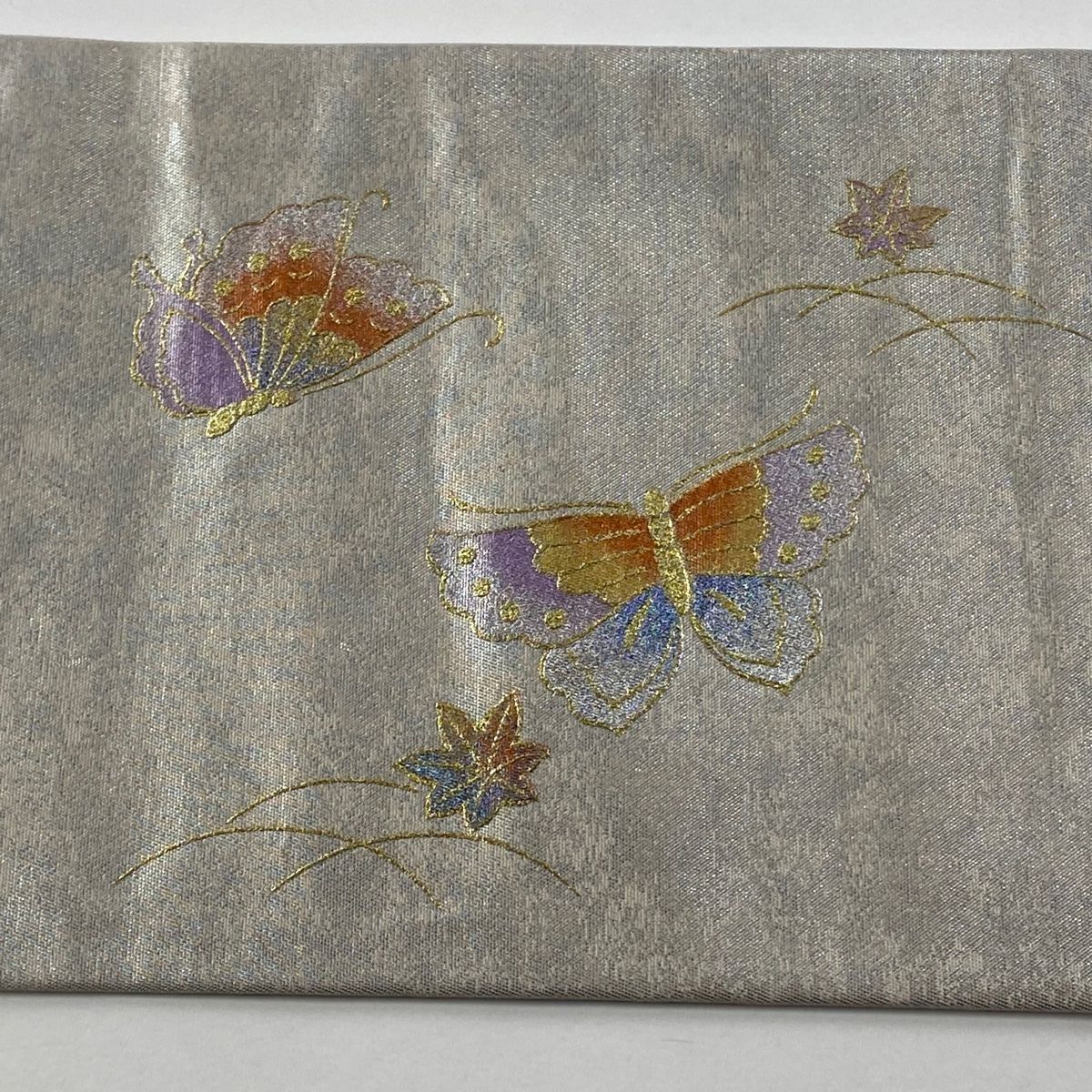 名古屋帯 秀品 蝶 流水 金銀彩 銀色 正絹