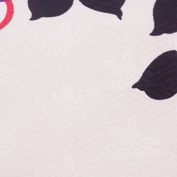 表地は、ピンクホワイト色地に赤・オレンジ色・紫色の椿柄です。