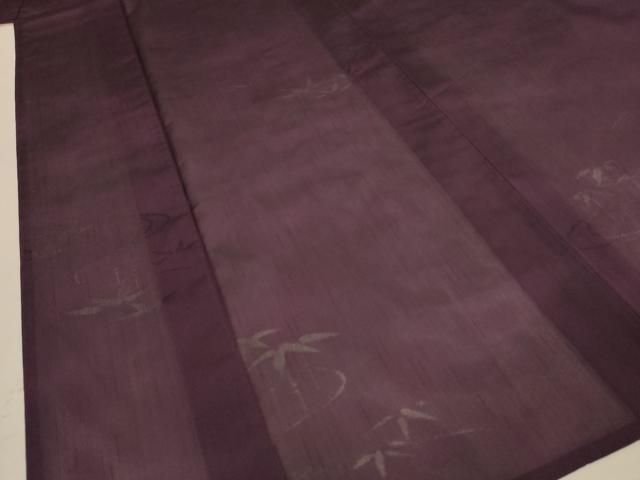 平和屋着物 夏物 色無地 流水笹竹紋紗 紫鳶色 正絹 jd