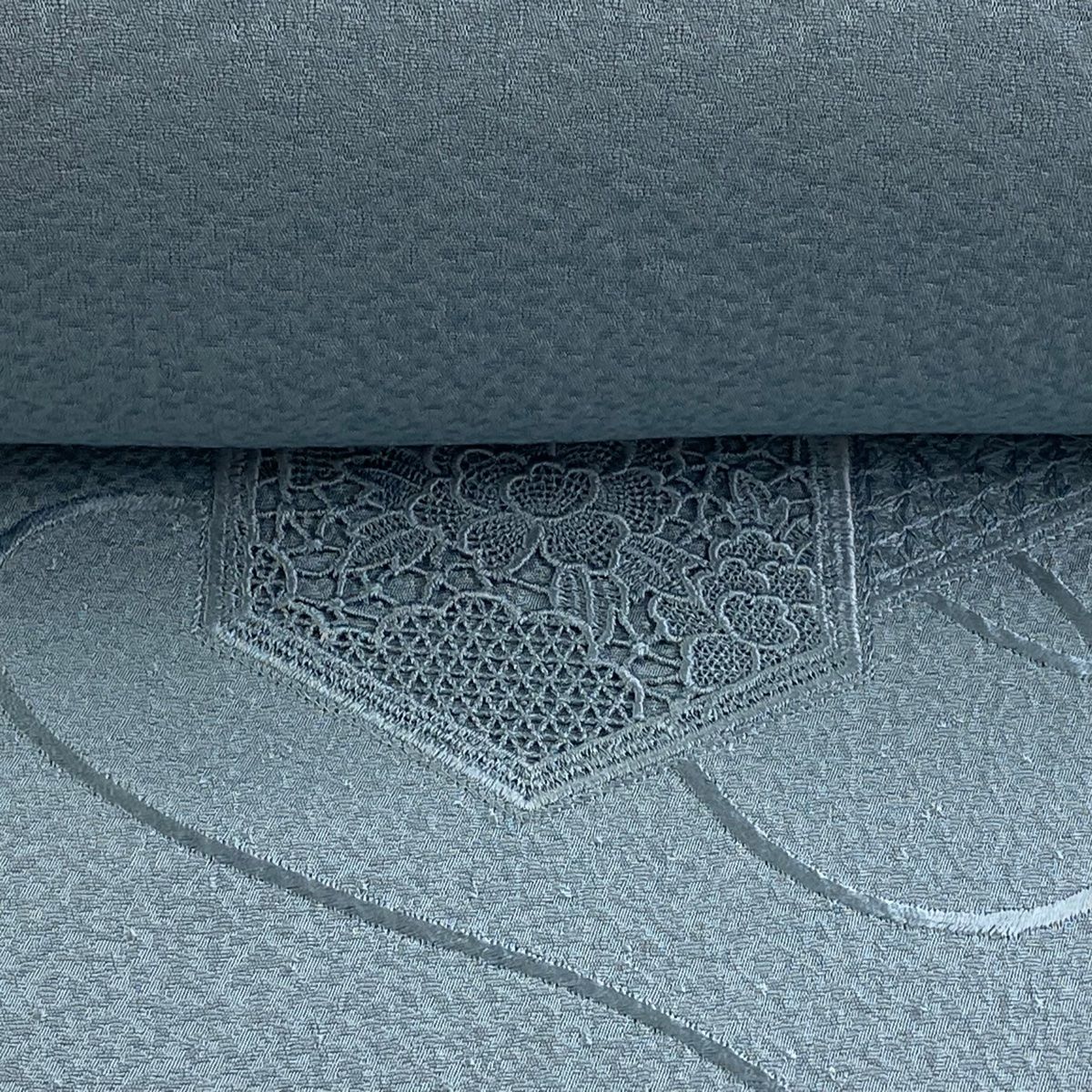反物 秀品 付下げ 堅牢染 亀甲 草花 刺繍 青灰色 正絹