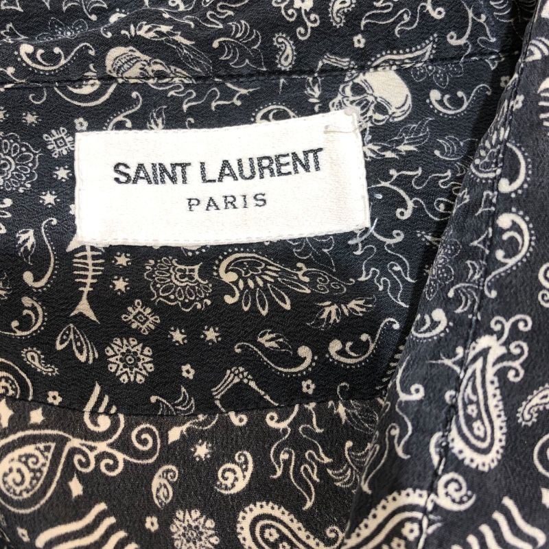サンローラン SAINT LAURENT スカルプリント長袖シルクシャツ 564172 ブラック シルク メンズ 長袖シャツ