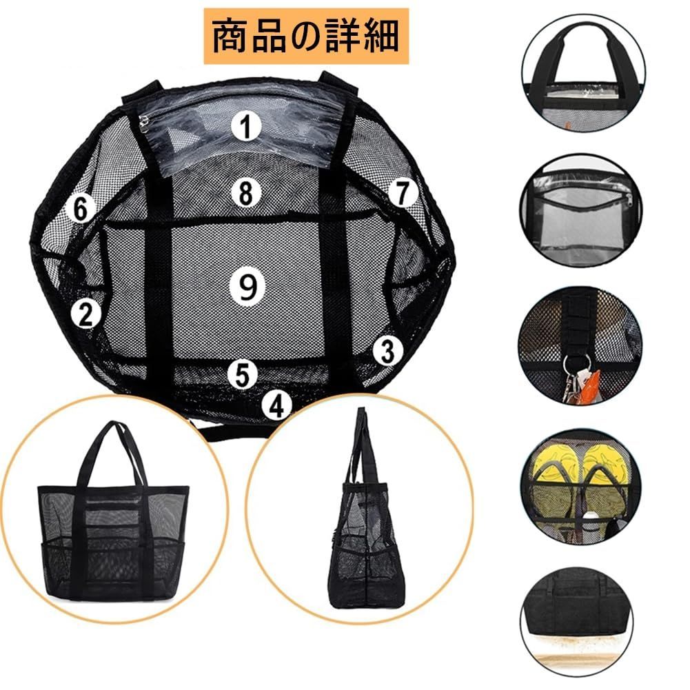 [BACISEN] プールバッグ 大容量 ビーチバッグ 大人 メッシュバッグ 丈夫 温泉バッグ 水泳バッグ 海用バッグ ポケット付き 折り畳み可能 男女兼用 旅行 銭湯 バッグ