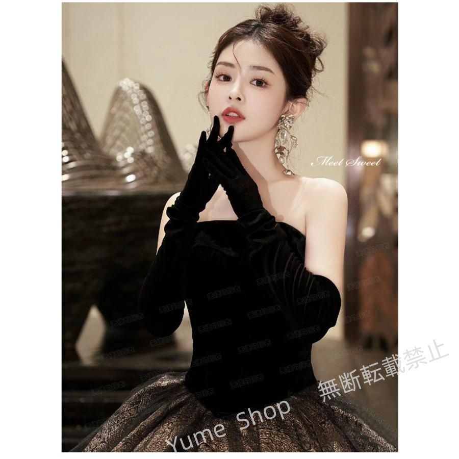 ♥ カラードレス プリンセスライン ブラック ベアトップ 黒 ロングドレス ウェディングドレス 結婚式 二次会 花嫁 前撮り 演奏会 発表会 ステージ衣装 お洒落 nhdw 148