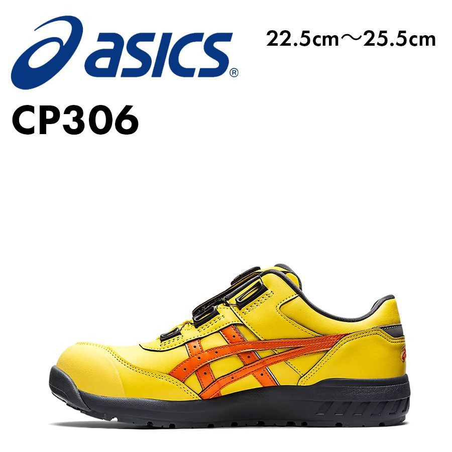 安全靴 アシックス ASICS CP 306 ブライトイエロー×ハバネロ 22.5 cm~25.5 cm ローカット BOAシステム JSAA A種 耐油 衝撃吸収 耐久性 フィット感 セーフティーシューズ FCP BOA