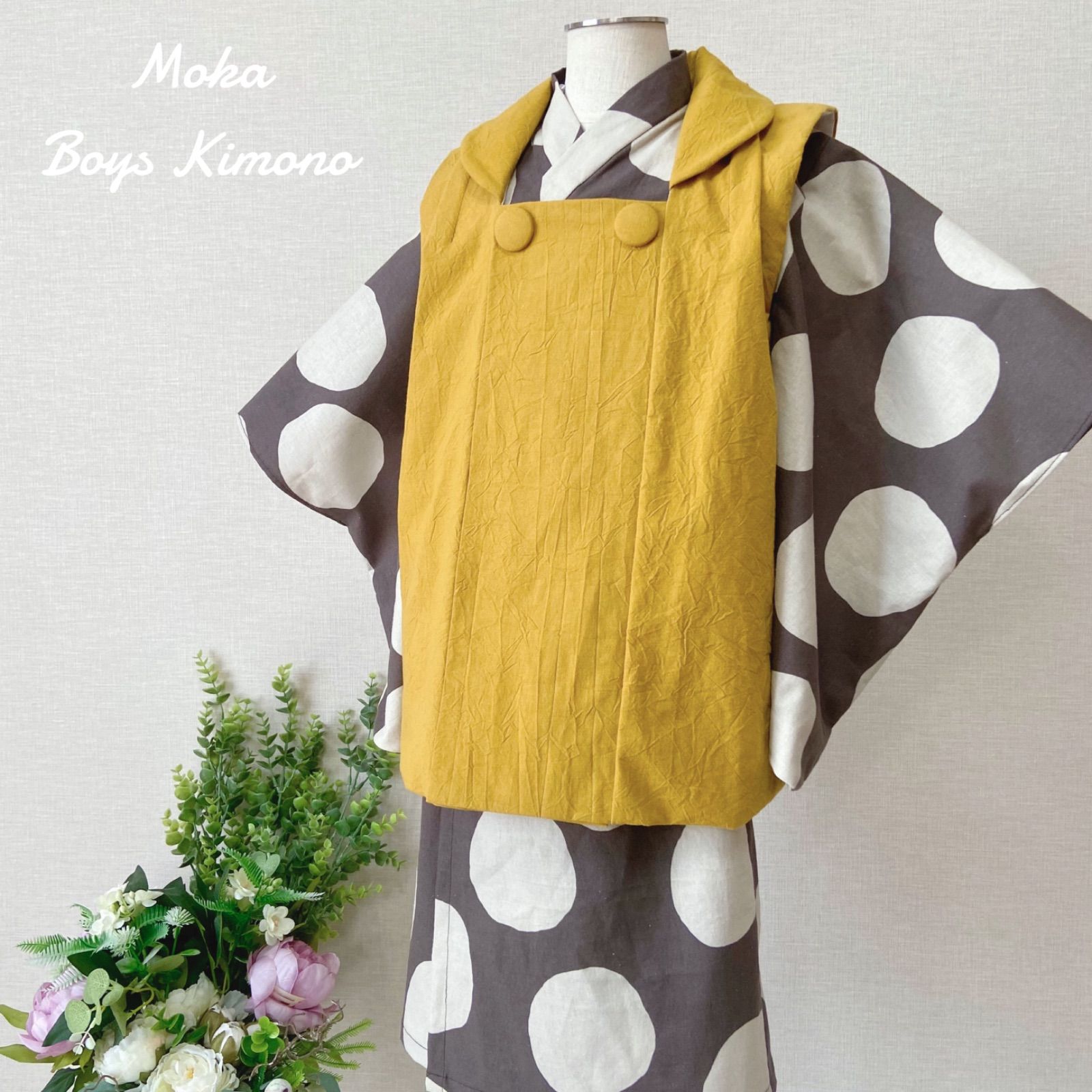 七五三 男の子 3歳 着物&被布コート セット 大きなドット ハンドメイド