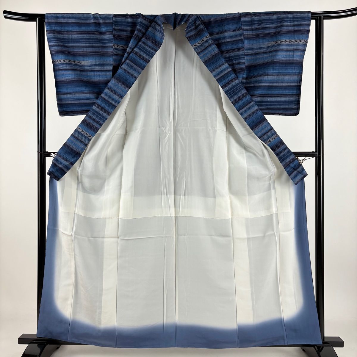 紬 身丈160 cm 裄丈62.5 S 袷 縞 青 正絹 秀品