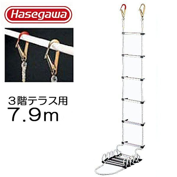 避難はしご 避難ロープ 避難梯子 3階 テラス用 7 9 m 蛍光テープ付 防災グッズ 防災用品 地震対策