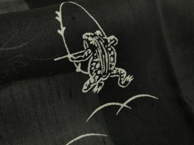 平和屋着物 上 夏物 絹芭蕉 紗紬 鳥獣戯画 黒地 kh 5