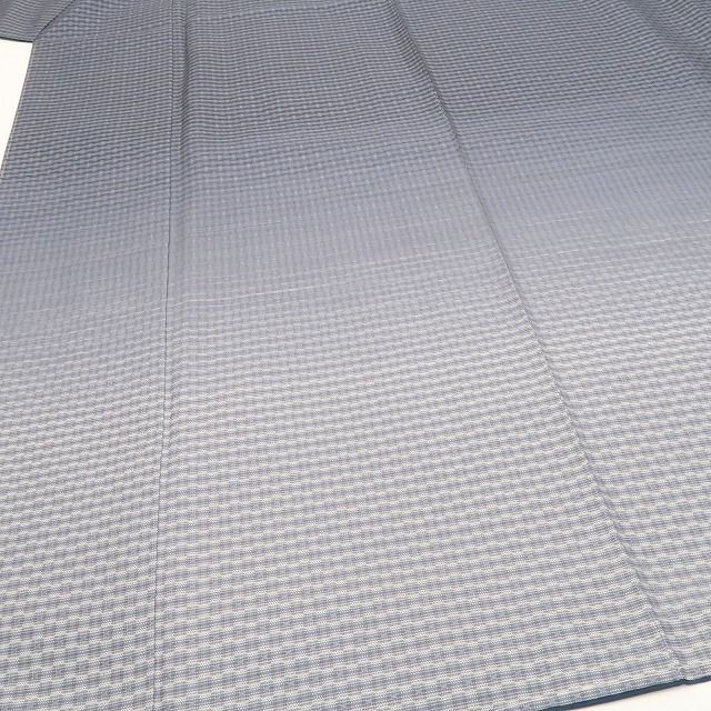 こちらのお着物は、落ち着きのある青褐色のグラデーションを込めた一枚。
