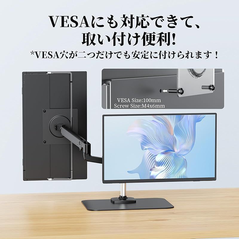 モバイルモニター、自立スタンド付き、VESA対応