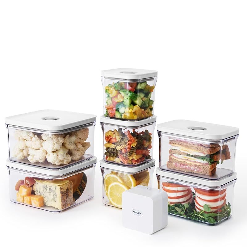 VAKUEN 真空保存容器 全自動食品シーラー機 ショート8点セット バルブで便利開閉 BPAフリー 漏れ防止 非真空保存の容器よりも最大5倍長く食品を新鮮に保存 OT BASIC SET 8 P 0