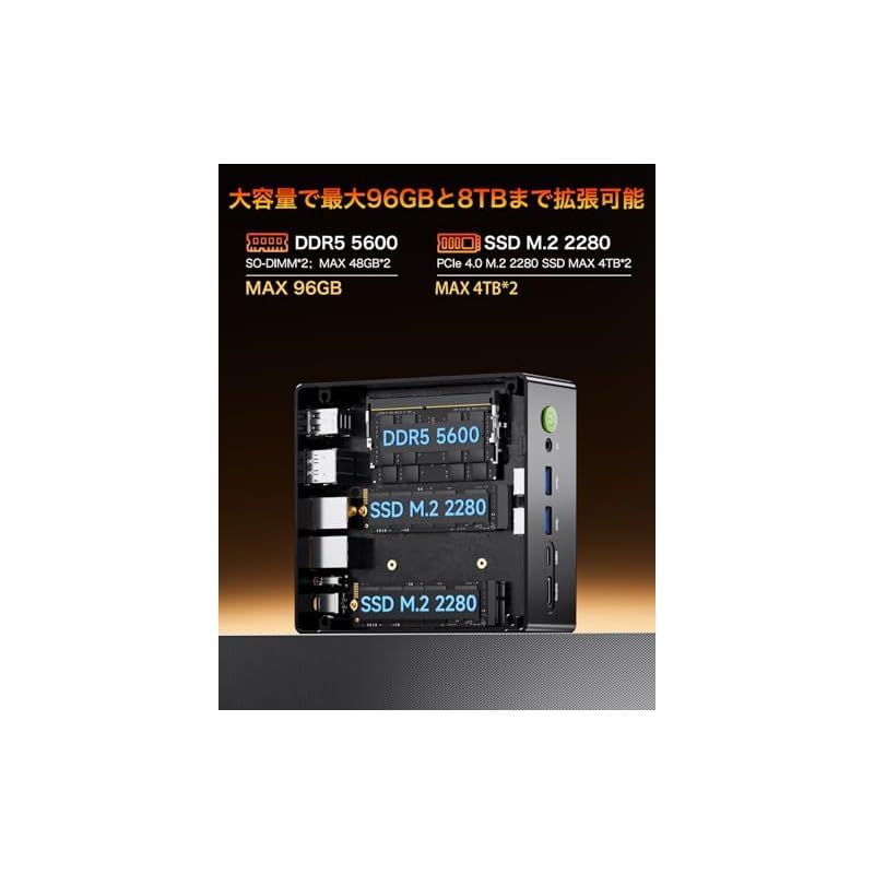 商品名:【超高性能ゲーミング&生産性ミニPC】GMKtec ミニPC |AMD Ryzen7 8845HS+NPU|128GB DDR5+8TB SSD拡張可|Oculink+USB4.0×2搭載 MAX 5.1GHz|Windows11 Pro Mini pc |W