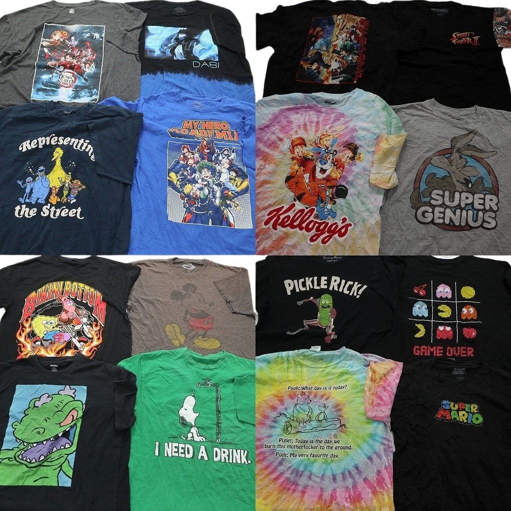 古着卸 キャラクター 半袖Tシャツ セット メンズ L マリオ スヌーピー ストリートファイター ヒロアカ 古着 NC 3857