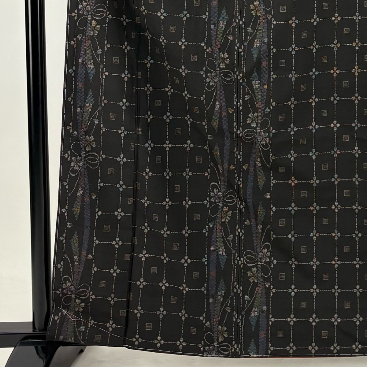 大島紬 身丈163 cm 裄丈68 L 袷 純泥染 やまと 証紙 格子 桜 墨色 正絹