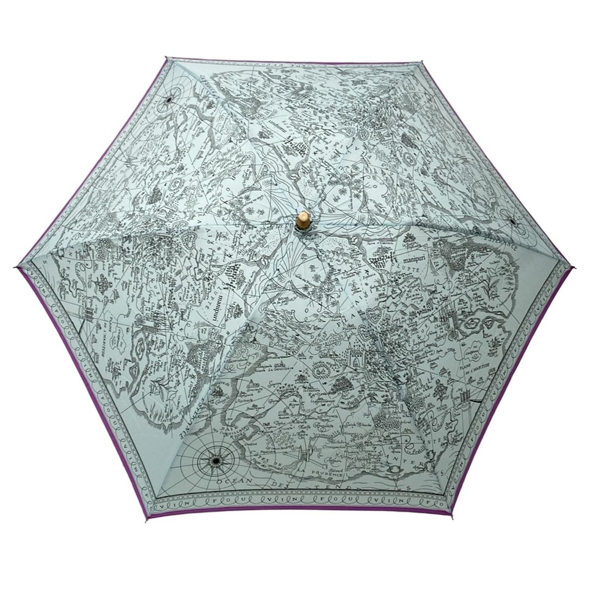 manipuri マニプリ 折りたたみ傘 - ライトグリーン×黒×パープル