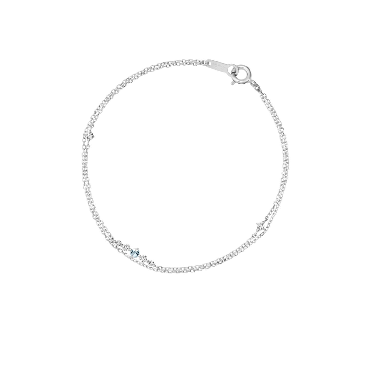 変色しにくいオリジナル素材「4℃エターナルシルバー」の2連ブレスレット。瑞々しいアクアマリンとキュービックジルコニアの輝きが、凛とした品のある印象を与えてくれます。※天然石を使用しているため、実際の色味や風合いが異なる場合がございます。