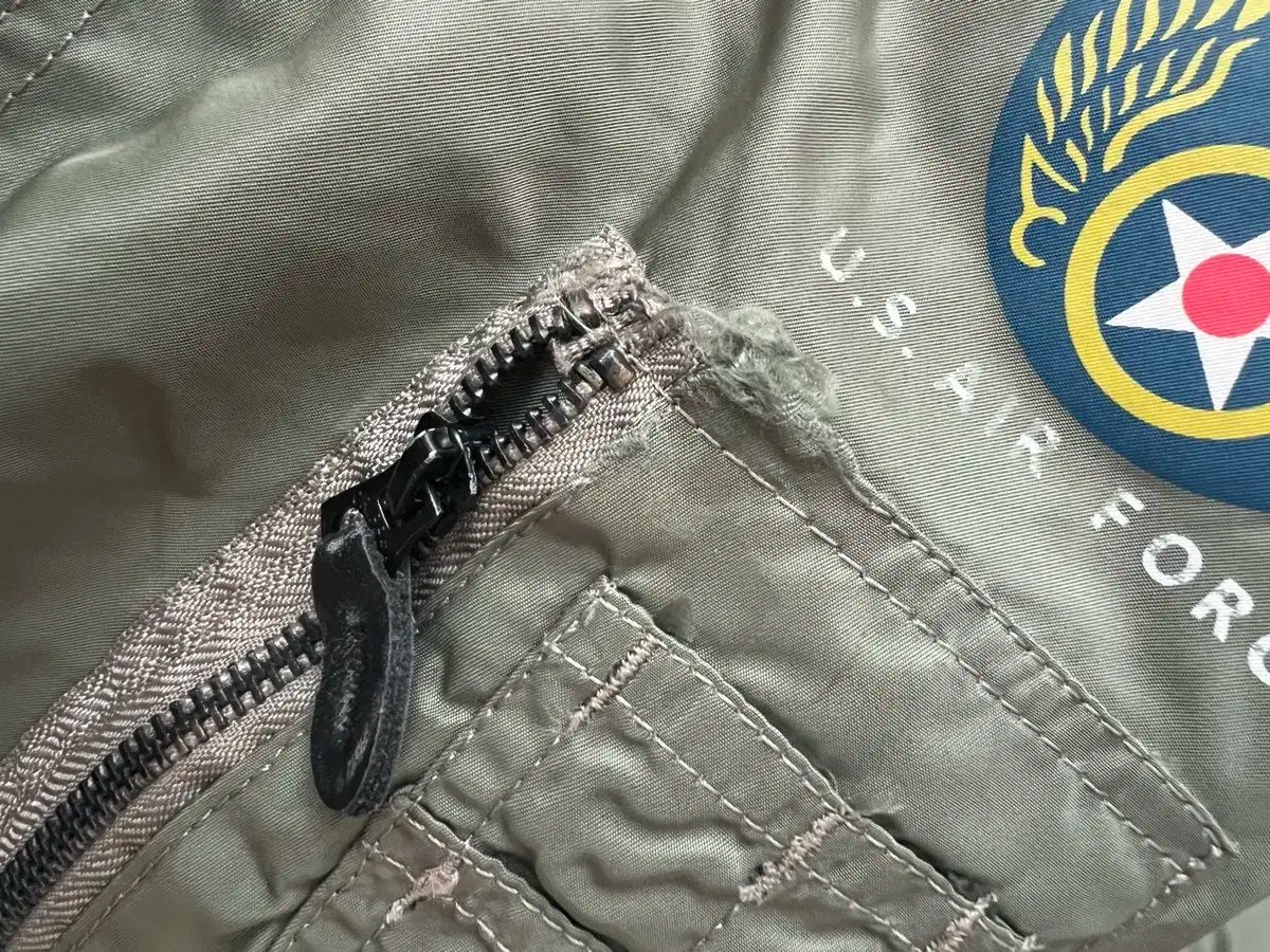 MA-1ミリタリーMA-1ジャケット スタイル ジャケットです。カーキ カラー バターンに色々なパッチが付属しています。