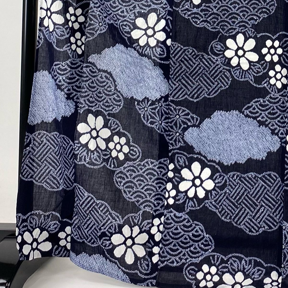 浴衣 身丈168 cm 裄丈66 M 絞り浴衣 草花 青海波 濃紺 綿