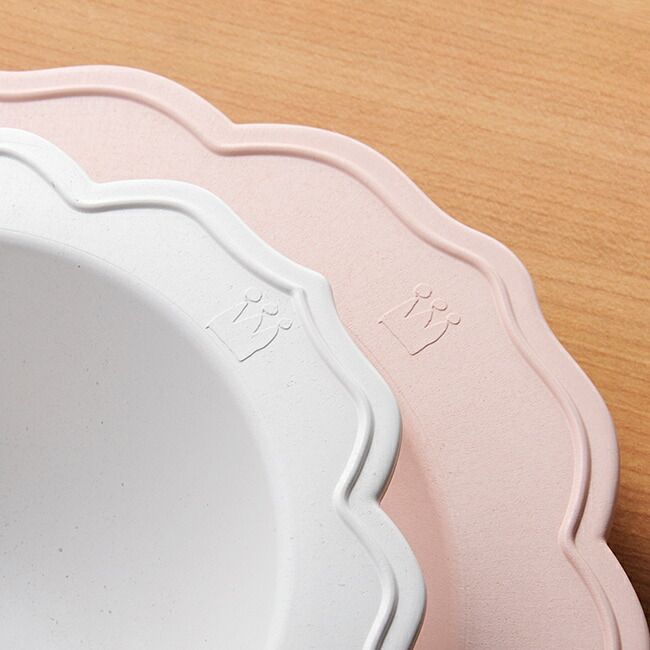 有害物質を含まない竹由来のバイオマスプラスチックを使用しています。陶器のようなやさしい質感と優しい色合いが魅力のひとつです。