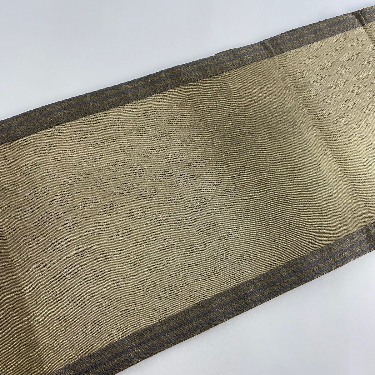 袋帯 菱 縞 金通し 金茶 全通 正絹