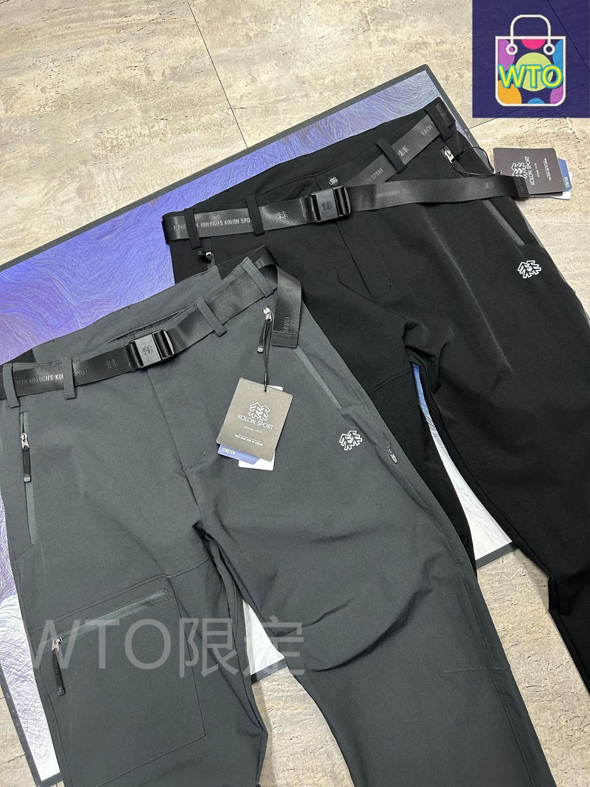 秋の長パンツ KOLON SPORT コロン メンズ用のソフトシェルパンツ アウトドア用の撥水性能のあるスポーツ長パンツ ストレッチのあるクラシックなパターンのパンツ ソフトシェルで速乾性のあるパンツ WTO輸入1
