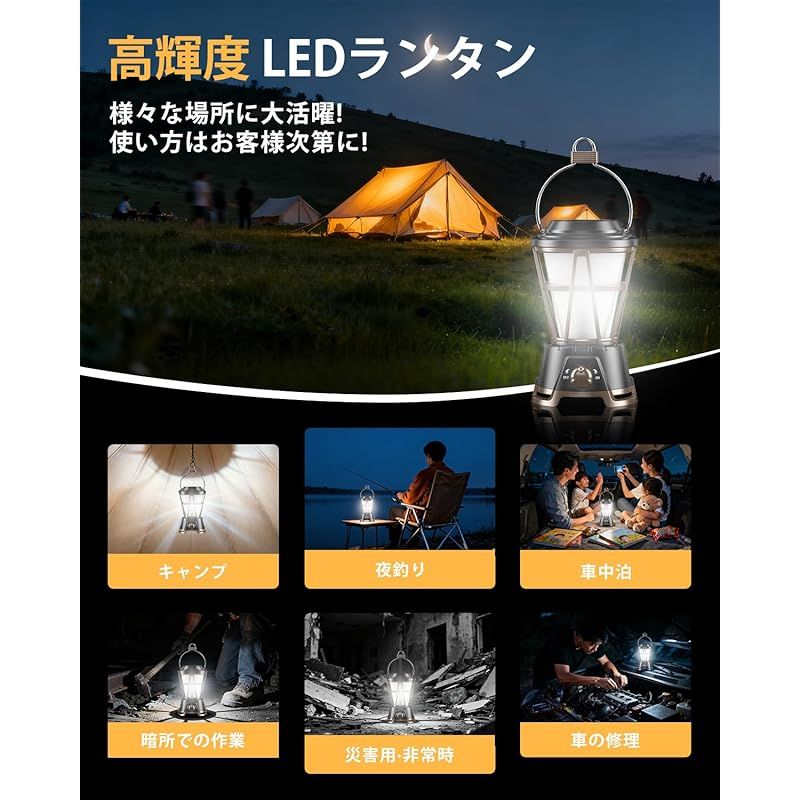 【柔らかい光・高輝度】:最新のCOB LEDライトを採用し、明るさは最大1800ルーメン、高密度素材でできているキャンプランタンから360度で柔らかい光を提供し。5000mAh大容量バッテリー搭載で最長50時間連続使用可能。暗い場所でも緊急災害時にも役立ち、インテリア・アウトドアで大活躍なLEDランタンです。