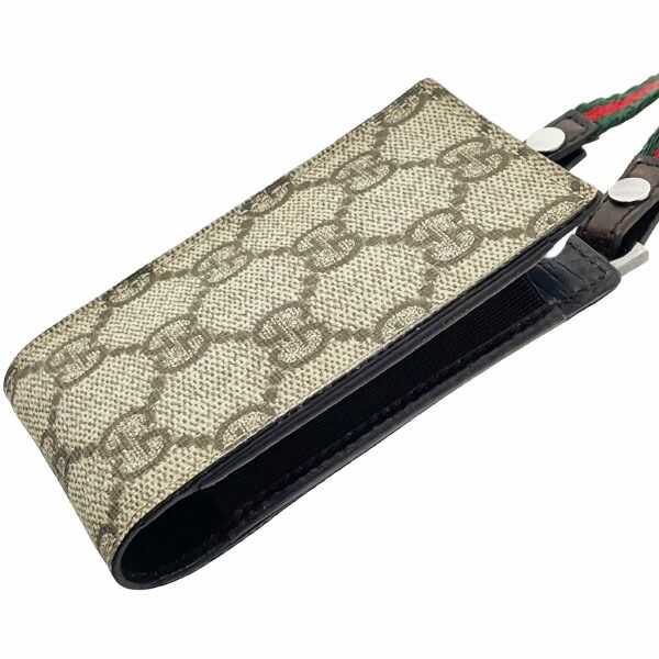 グッチ 携帯ケース シェリーライン GGプラス 携帯ポーチ PVC ベージュ グリーン 緑 レッド 赤 125848 GUCCI ウェビング ネックストラップ 携帯入れ 小物入れ モバイルポーチ ポーチ ブランド小物