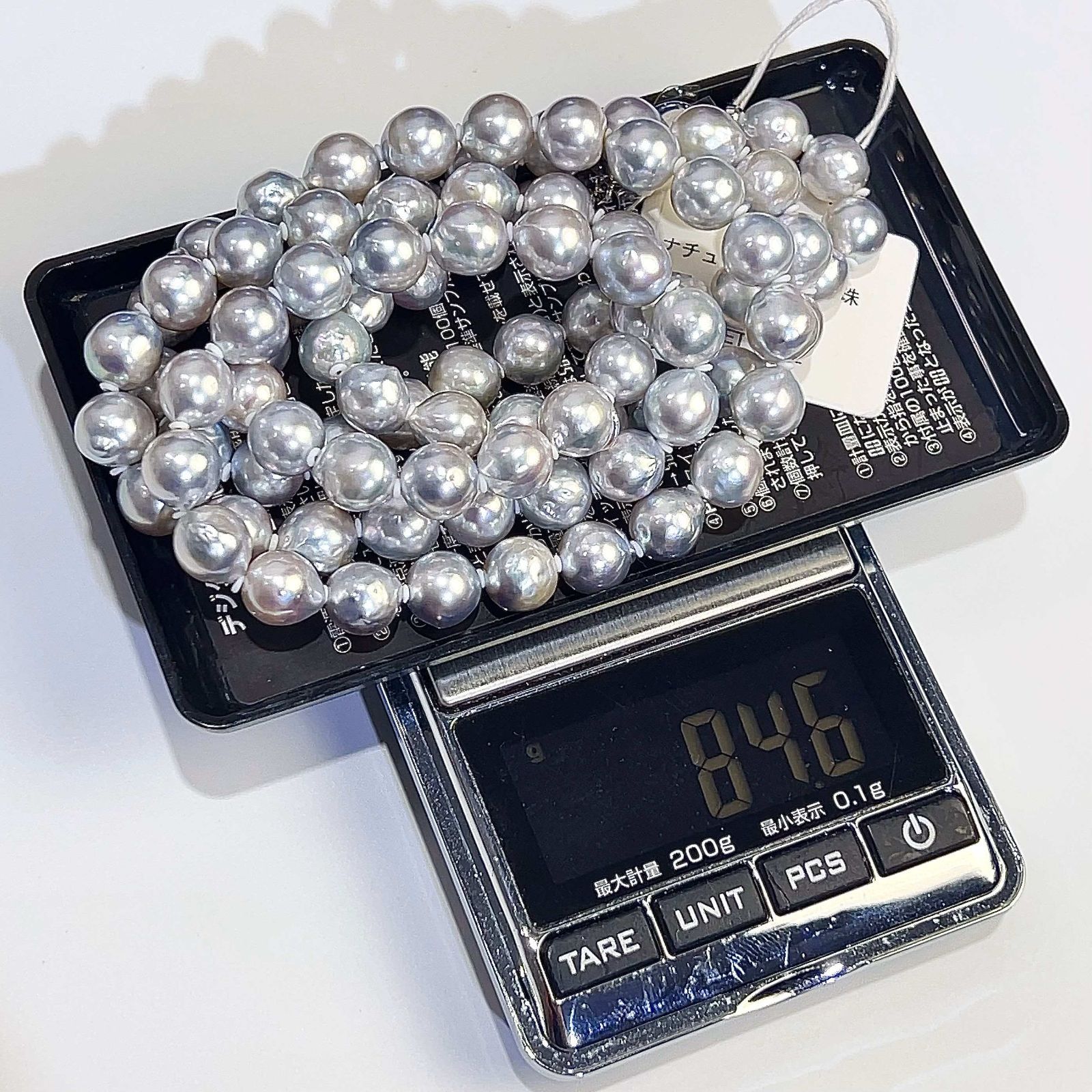 天然 SV AKOYA ナチュラル 無調色 アコヤパール バロック ロング ネックレス ナチュラルグレイ 86 cm P 8.5−9 mm 84.5 g 本真珠 レディース ota 72003 r 61001