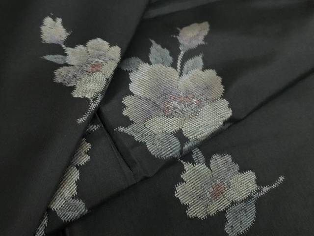 平和屋着物 上質な紬 舞花文 黒地 正絹 ud