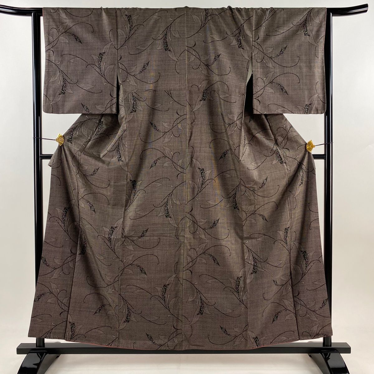 大島紬 身丈157.5 cm 裄丈64.5 M 袷 鈴乃屋 証紙 草花 純泥染 焦茶色 正絹