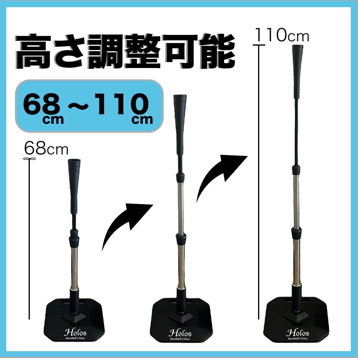 HolosBaseballClinic バッティングティー スタンド 高さ調整 頑丈 ゴム アイアン スプリング式