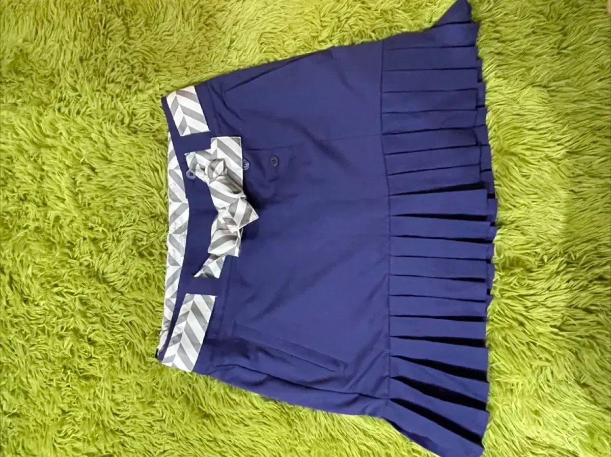 これはネイビーカラーのNIKE (ナイキ) ゴルフスカートです。ポイントとして着用できるベルトも付いています。裾がプリーツスカートのように見えて、アクティビティもしやすいです。別途ご不明な点がございましたら、すぐに安心してお支払いください!