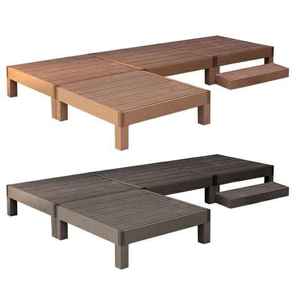人工木ウッドデッキ ecofeel エコフィール 4台 ステップセット エクステリア ガーデンファニチャー ウッドデッキ pwde-4 p-stp 縁台 縁側 DIY キット