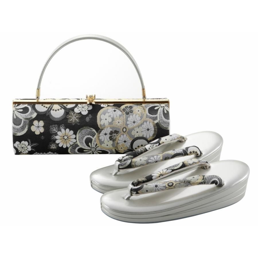 振袖用 帯地 草履バッグセット 三枚芯 Fサイズ 梅柄 ブラック bs-376-24