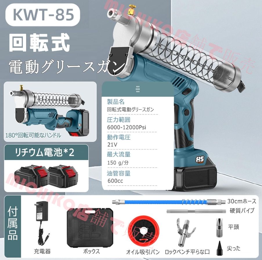 電動グリスガン 手持ち式 回転式 充電式 コードレス グリースガン 高圧 容量600 cc 樽型用 ケムシ型用 1台2役 掘削機グリースガン 農業機械 車 オートバイのメンテナンス 船舶用機器 業界グリスガン KWT 85 バッテリー